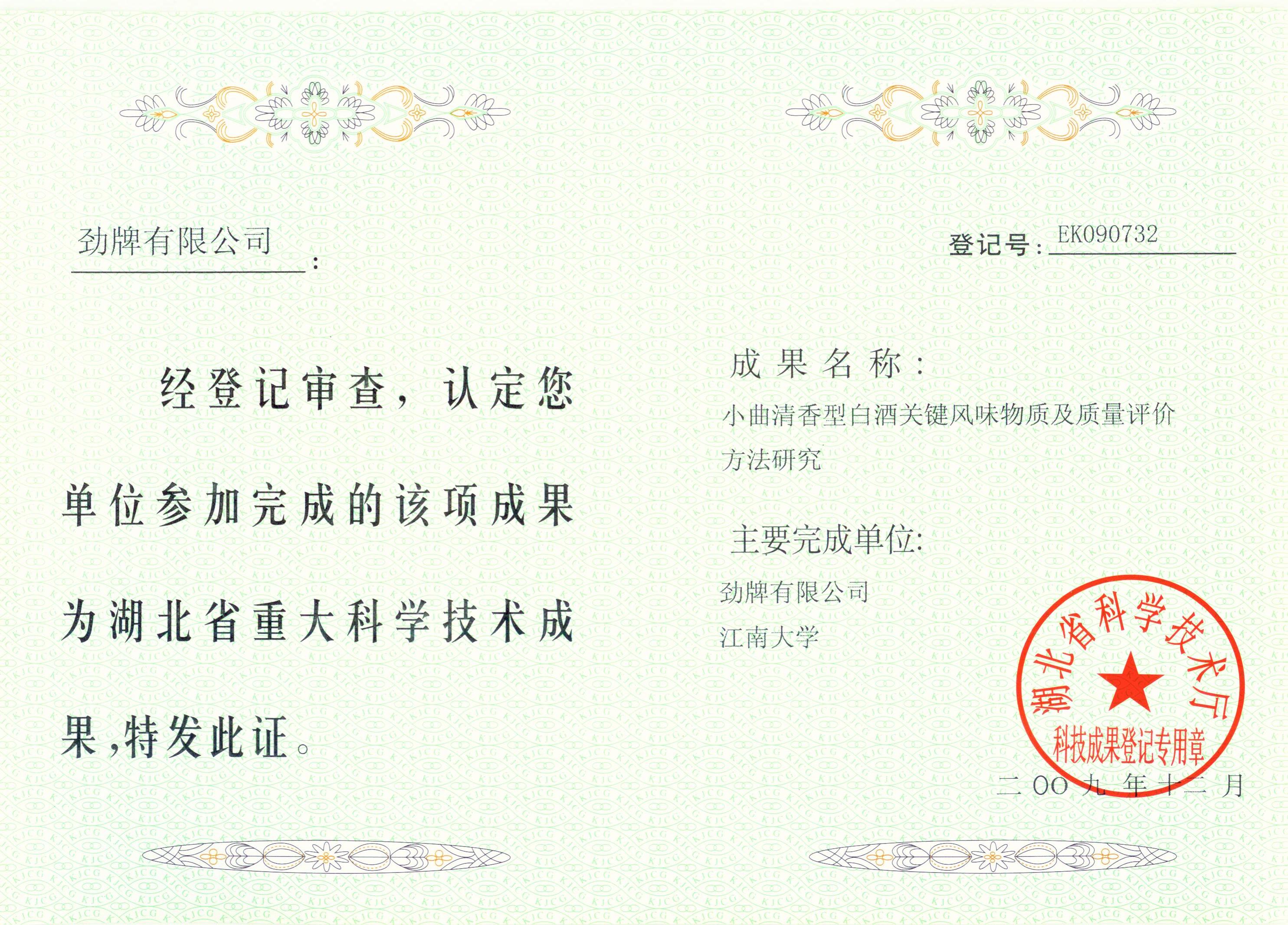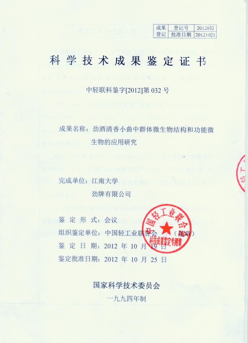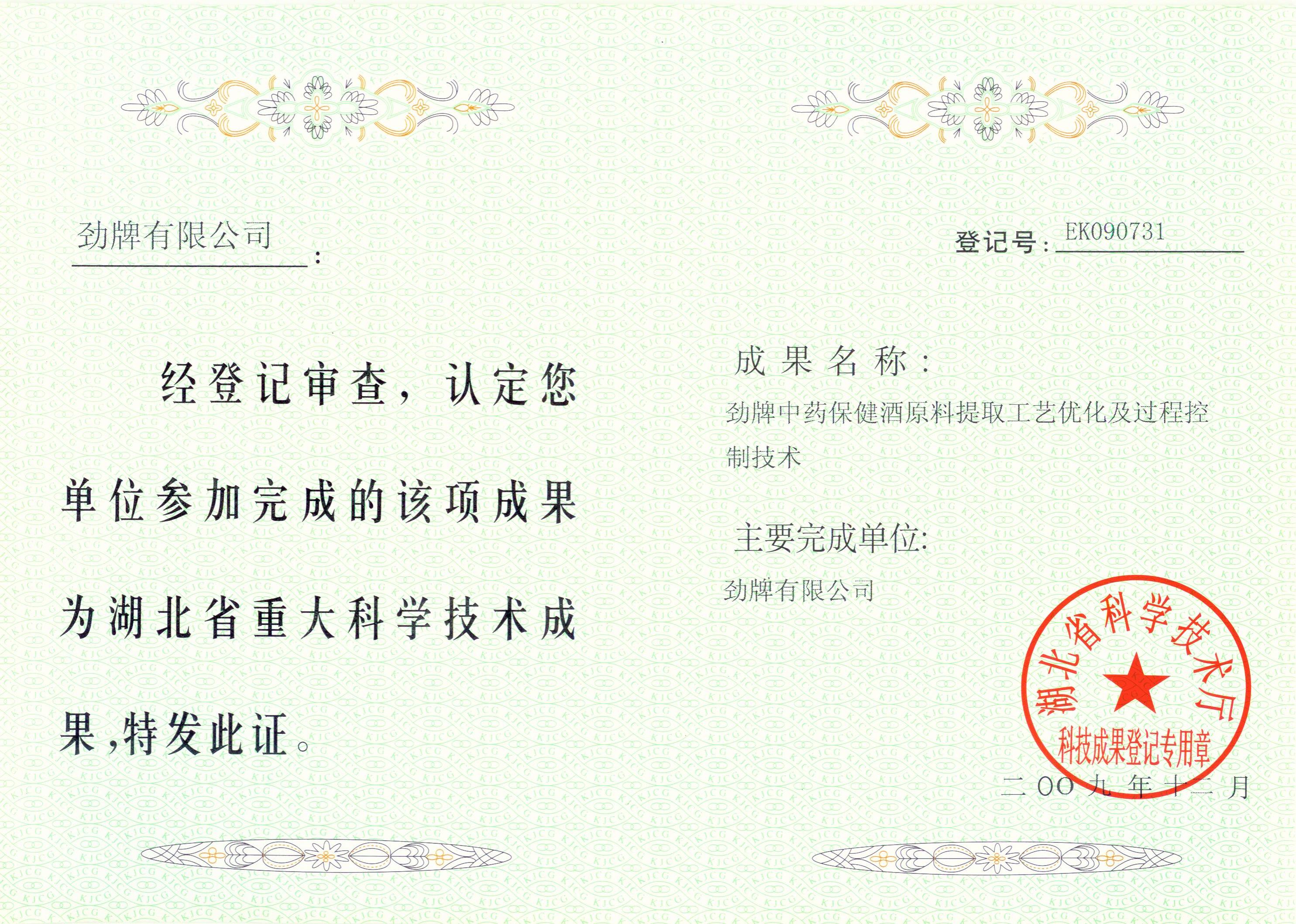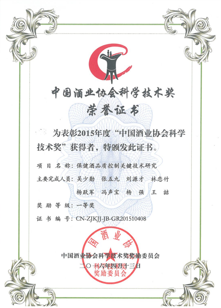 近年來,公司圍繞保健酒、草本白酒和中草藥新產(chǎn)品研發(fā)、產(chǎn)品改進和基礎應用技術,在中藥數(shù)字化提取、小曲酒釀造新工藝、中藥指紋圖譜等核心技術方面擁有自主知識產(chǎn)權,通過行業(yè)協(xié)會等鑒定機構技術評估22項,其中15項成果鑒定為“國際領先”水平,7項成果鑒定為“國際先進”水平。