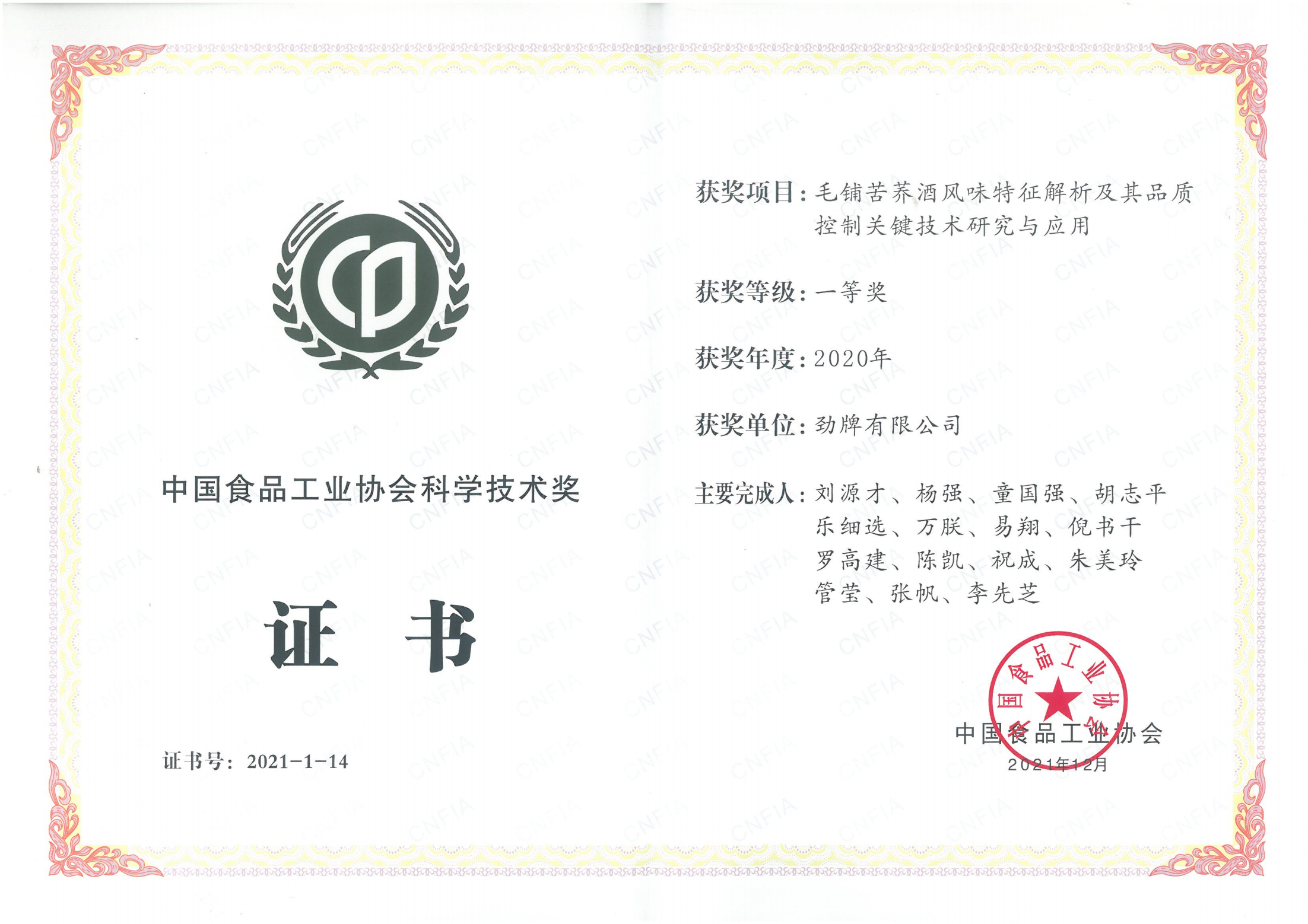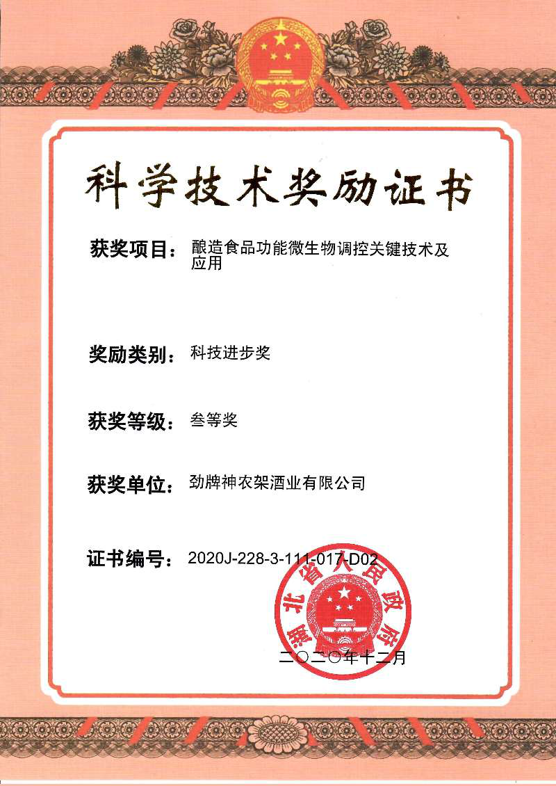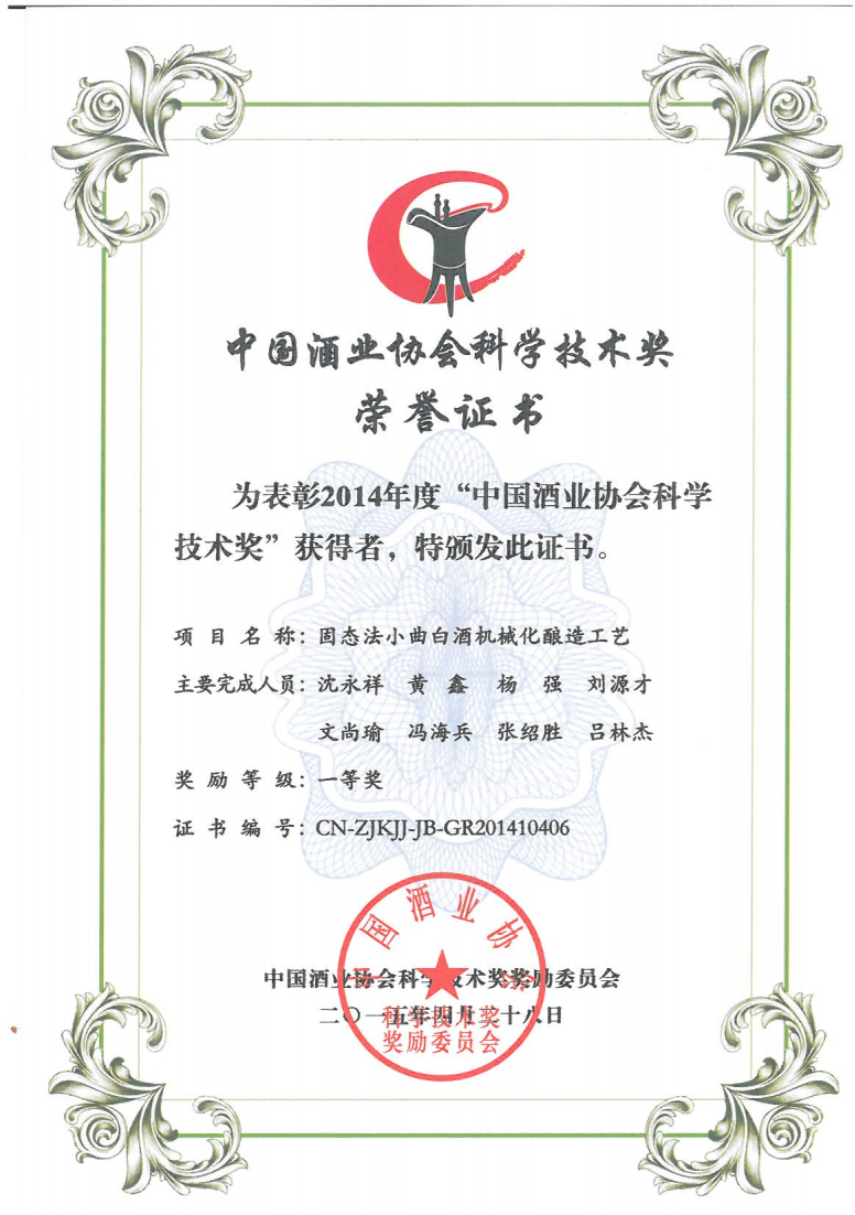 近年來,公司圍繞保健酒、草本白酒和中草藥新產(chǎn)品研發(fā)、產(chǎn)品改進和基礎應用技術,在中藥數(shù)字化提取、小曲酒釀造新工藝、中藥指紋圖譜等核心技術方面擁有自主知識產(chǎn)權,通過行業(yè)協(xié)會等鑒定機構技術評估22項,其中15項成果鑒定為“國際領先”水平,7項成果鑒定為“國際先進”水平。