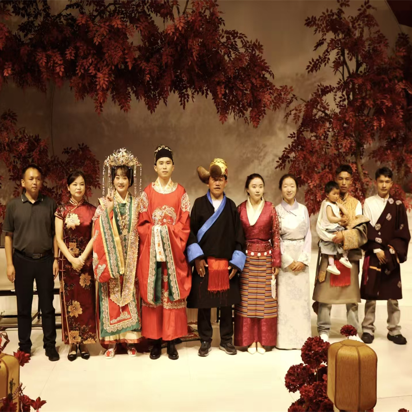 十一期間,大冶市天鵝禮宴中心,掛滿紅綢的大廳彌漫著桂花香。藏族姑娘索朗卓嘎戴上鳳冠,穿上繡有并蒂蓮裙...